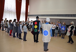 Закрепили полученные знания ребята с помощью игры. Школьники разделились на две команды: водителей и пешеходов и на импровизированной проезжей части, соблюдая все правила и сигналы светофора, передвигались по дороге.