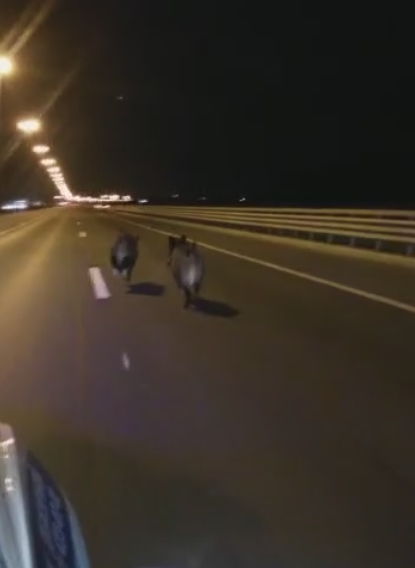 Экипаж ДПС разогнал диких кабанов на кольцевой автодороге вокруг Санкт-Петербурга