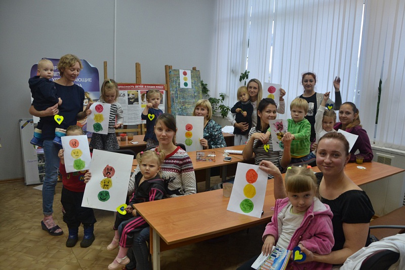 Для молодых родителей, посещающих «Клуб молодой семьи», было организовано интегрированное занятие по ПДД инспектором по пропаганде ГИБДД по Петродворцовому району г. Санкт-Петербурга совместно с руководителем ИЗО-студии «Петродворцовая палитра».