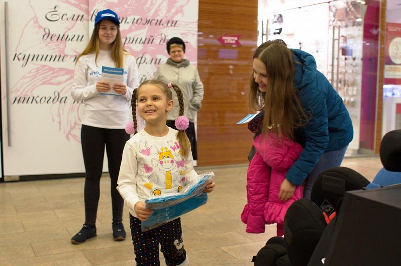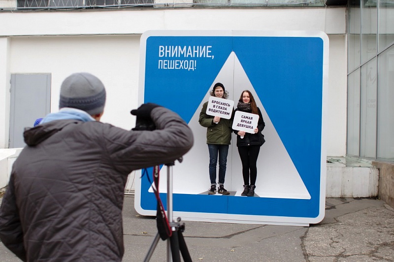 Перед входом в торговый центр работали еще три площадки, - зона торможения для демонстрации, как меняется тормозной путь автомобиля при увеличении скорости на 20-40 километров в час; зона с тренажером, имитирующим реальное столкновение на скорости 20 км/ч, для демонстрации действия ремней безопасности; фотозона, где каждый смог проявить свои творческие способности и, украсив себя различными световозвращающими предметами, сфотографироваться в знаке пешеходного перехода.