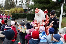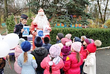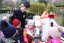 Организаторы мероприятия рассказали о значениях дорожных знаков и вручили всем детям световозвращатели, обучающие раскраски и канцелярские принадлежности, пожелав исполнения всех новогодних желаний и безопасности на дорогах.