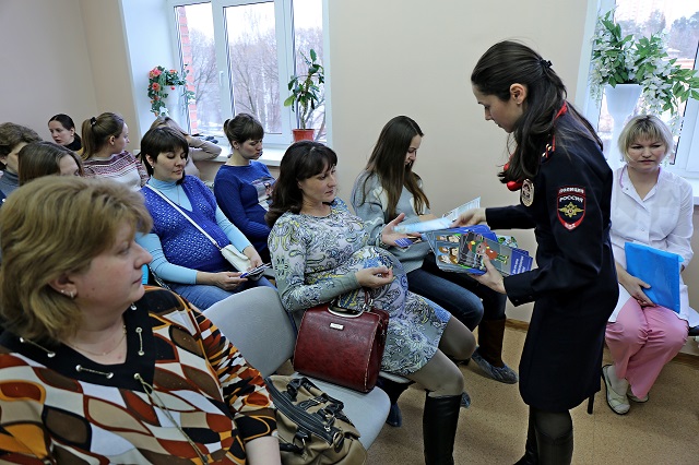 Сотрудники подмосковной Госавтоинспекции в женской консультации Подольского района провели для будущих мам специальное мероприятие «Школа молодых мам».