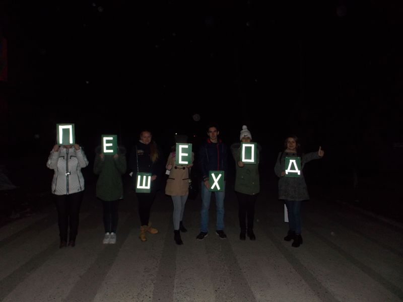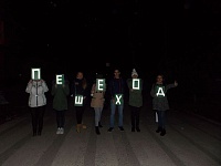 Флэш-моб провели в темное время суток. Светящиеся буквы выстраивались в разные слова и фразы, призывая очевидцев мероприятия использовать световозвращатели. Студенты собственным примером показали горожанам, что значит быть ярким и заметным пешеходом.