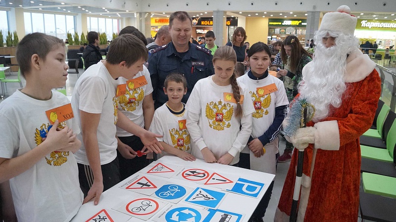 В преддверии новогодних праздников в самом крупном торгово-развлекательном центре Южного Урала сотрудники Госавтоинспекции Челябинска совместно с представителями Общественного совета ГУ МВД России по Челябинской области провели квест по дорожной тематике «Правила движения от Деда Мороза».