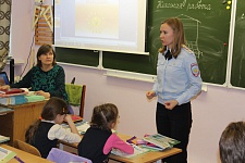 В начале организаторы мероприятия решили устроить сюрприз школьным товарищам девочки и пришли к ним с поздравлениями. Полицейские рассказали школьникам о своей службе; далее в игровой форме ребята повторили Правила дорожного движения и пообещали автоинспекторам неукоснительно их соблюдать.