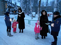 Инспекторы распространяют среди родителей памятки на тему дорожной безопасности и светящуюся ленту, которую рекомендуется крепить на санки и одежду малыша. При этом рекомендуется, чтобы дети не оставались в стороне и вместе с мамами выбирали место крепления полезного украшения.