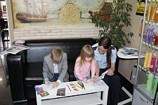 Для детей, которые сюда приходят с мамами, оборудована отдельная зона с книгами и раскрасками по тематике дорожной безопасности и подборкой мультфильмов, в которых популярные детские персонажи рассказывают о том, как правильно вести себя на дороге.