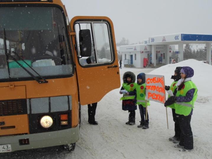 На АЗС, расположенной на оживленной трассе в Фаленском районе Кировской области, прошла акция, направленная на пропаганду соблюдения автомобилистами скоростного режима. «Школьный патруль» вручал кировчанам листовки и рассказывал водителям, что выполнять требования лишь дорожных знаков недостаточно, поскольку реальные дорожные условия оказывают не меньшее влияние на безопасный выбор скорости, поэтому скорость необходимо дополнительно снижать ночью, в дождь и снег, в условиях плотной городской застройки, особенно при проезде пешеходных переходов.