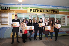 Разместив в приёмных отделениях специальные плакаты, организаторы мероприятия пожелали посетителям поликлиник безопасного участия в дорожном движении.