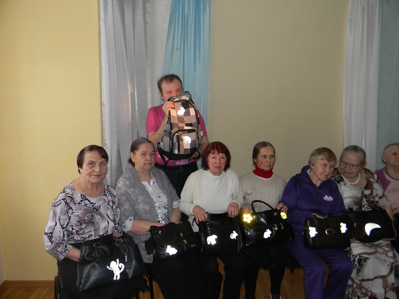 Во время занятий участникам «Школы безопасности» автоинспекторы предложили изготовить световозвращатели. Каждый участник, проявляя заботу о своих детях и внуках, изготовил не по одной световозвращающей наклейке. Женщины разместили их на своих дамских сумочках, мужчины – на рюкзаках, согласившись с тем, что в условиях недостаточной видимости световозвращатель становится практически единственным способом обозначить себя на проезжей части.