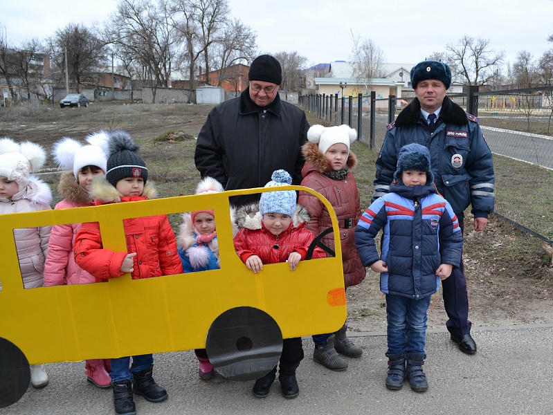 В рабочем посёлке Усть-Донецкий воспитанники детского сада прошли по безопасному маршруту в составе «Шагающего автобуса», возглавляемого ветераном Госавтоинспекции Виктором Васюковым.