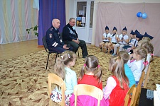 Перед тем как отправиться по маршруту, он рассказал дошкольникам об истории донской милиции, образовании Госавтоинспекции и о рабочих буднях сотрудников полиции. Далее «Шагающий автобус» направился к оживленному перекрёстку, который малыши каждый день переходят по дороге в детский сад.