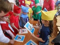 После первого полугодового этапа обучения педагоги решили сравнить достижения всех групп детей. Для этого был разработан специальный проект, согласно которому ЮИДовцы самостоятельно проверят, чему научились воспитанники старшей и подготовительной группы. Были разработаны билеты на знание правил поведения на дороге и в транспорте, ребята показали мини-выступления по тематике безопасности дорожного движения, участвовали в конкурсе на фигурное вождение детского электромобиля. Каждый этап мероприятия проходил под постоянным контролем педагогов и автоинспекторов.