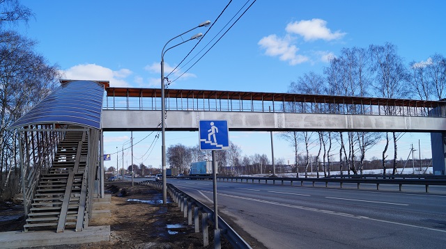 В посёлке Радиоцентр Ногинского муниципального района на федеральной трассе М-7 «Волга» появился уникальный надземный переход. Инновационный объект улично-дорожной сети представляет собой сооружение, конструкция и фундамент которого позволяет разбирать его и использовать повторно в другом месте.