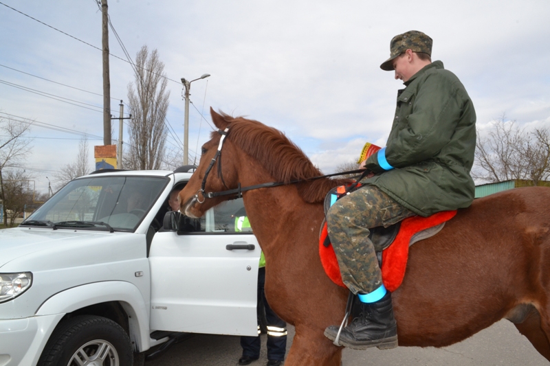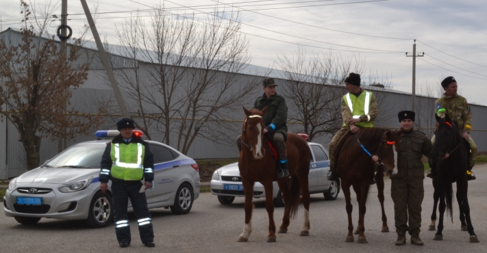 Конные казачьи патрули на Старополье помогают Госавтоинспекции пропагандировать световозвращатели
