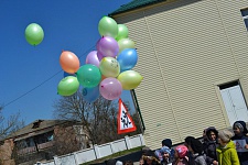 В завершение акции школьники запустили в небо воздушные шары с прикрепленным дорожным знаком, предупреждающим водителей о внимательности вблизи школ, парков, скверов и снижении скорости при появлении маленьких пешеходов вблизи проезжей части.