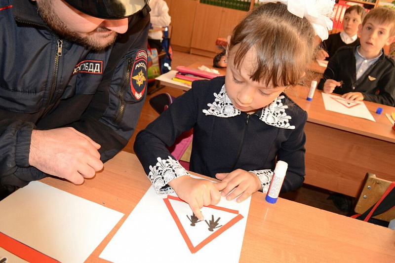 Накануне весенних каникул к акции присоединились школьники Грозного, - на уроке художественного труда первоклассники изготовили аппликации знака «Дети», после чего ребята вышли во двор школы и сделали совместную фотографию. Затем нарисованные знаки они распространили среди прохожих в качестве призыва к соблюдению Правил дорожного движения.