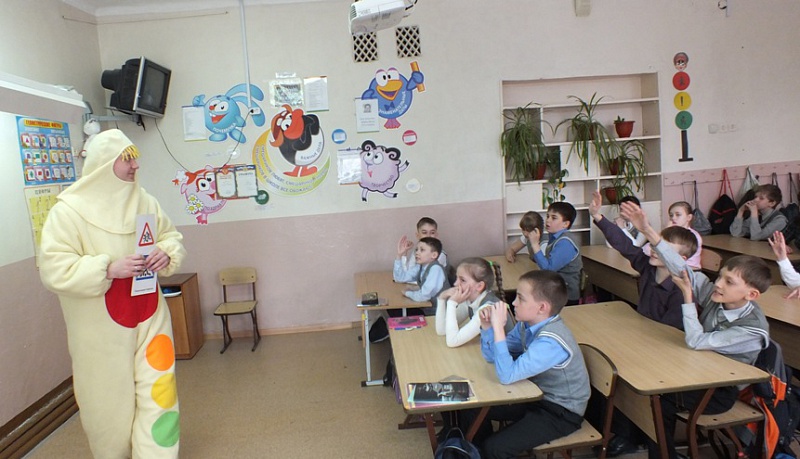 Школьники узнали назначение дорожного знака «Дети», нарисовали на доске свои маршруты от школы до дома и рассказали сотрудникам ГИБДД, как они переходят проезжую часть по нерегулируемым пешеходным переходам.