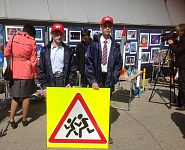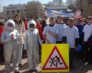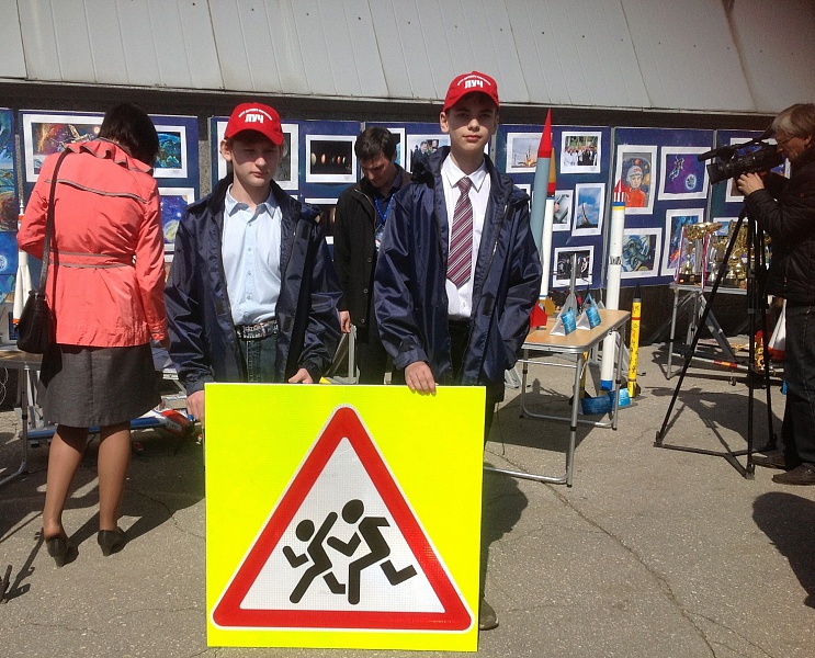 Далее #ДобрыйЗнак остановился около городской выставки с детскими рисунками и поделками космической тематики, после чего попал на парад юных космонавтов.