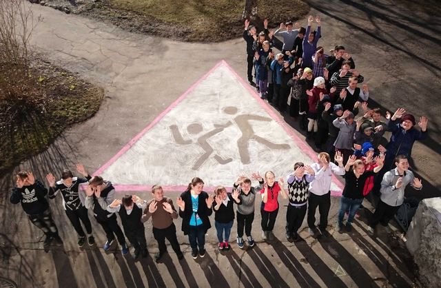 Под руководством сотрудников Госавтоинспекции и педагогов с помощью разноцветных мелков дети преобразили школьный двор в большой яркий #ДобрыйЗнак. Пока школьники трудились над созданием полезного рисунка на асфальте, сотрудники дорожной полиции рассказали юным пешеходам о правилах дорожной безопасности.