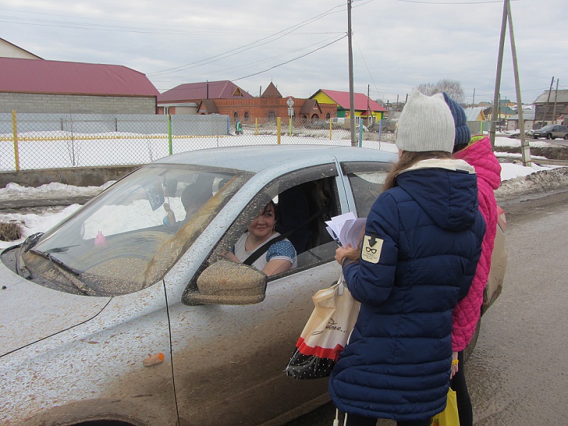 Ребята общались с водителями и пешеходами, рассказывали им об акции и вручали листовки. В ответ звучали признательные слова и обещания всегда соблюдать правила безопасности.