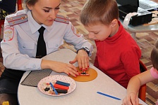 Автоинспекторы в детских садах областного центра провели уроки безопасности, в рамках которых дошкольники изготовили из пластилина и световозвращающей бумаги «добрые дорожные знаки» для своих родителей.