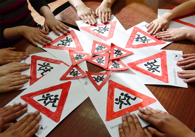 Тысячи школьников и воспитанников детских садов по всей стране сделали фотографии с дорожным знаком «Дети» возле своих образовательных организаций и разместили их в социальных сетях. Дети и подростки изготовили стилизованные символы акции с использованием самых различных художественных техник, материалов или компьютерных технологий.