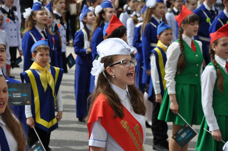 Завершилось массовое мероприятие исполнением Гимна отрядов ЮИД Ростовской области, после которого в небо были выпущены 500 шаров в качестве символов хрупкости человеческой жизни.