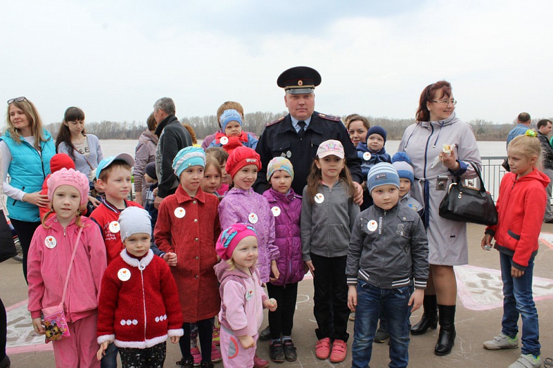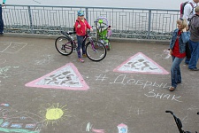 Велопрограмма собрала большую аудиторию и завершилась украшением набережной стилизованными знаками «Дети», а также вручением сотрудниками Госавтоинспекции световозвращателей.