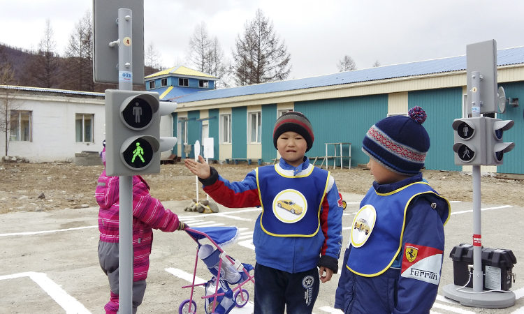 Дошкольники из отдаленных сел Бурятии закрепляют навыки дорожной безопасности с помощью мобильных автогородков