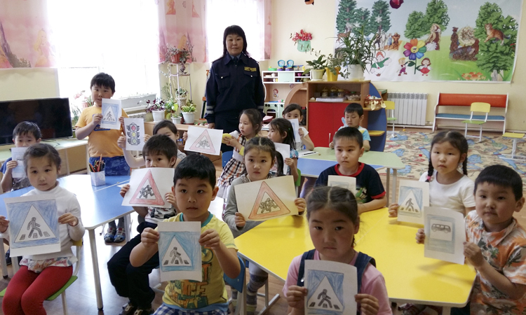 В селе Орлик Окинского района воспитатели детского сада и сотрудники Госавтоинспекции проводят для дошкольников уроки дорожной безопасности с помощью мобильного автогородка. Специальное оборудование поступило в дошкольное учреждение в рамках реализации республиканской программы по повышению безопасности дорожного движения.
