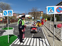 Первое практическое занятие для ребят провели школьные отряды ЮИД, которые придумали различные творческие конкурсы и практические задания. Больше всего детям понравилось управлять мини-автомобилями, - ездить по ровной дороге со свежей разметкой, соблюдая требования дорожных знаков, светофора и пропуская пешеходов на пешеходных переходах.