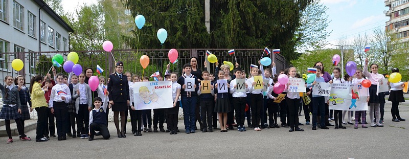 Ученики гимназии Нальчика вместе с педагогами и автоинспекторами вышли на перекрестки города в составе «Шагающего автобуса».