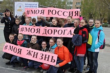 В Тюмени участники и волонтеры 15-ых молодежных Дельфийских игр России призвали сверстников соблюдать правила безопасности на дорогах. На площади 400-летия Тюмени у Драматического театра юные деятели искусства вместе с сотрудниками Госавтоинспекции развернули слоганы #МояРоссия, #МояДорога, #МояЖизнь.
