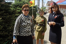 Члены отрядов ЮИД переодетые в военную форму времен Великой Отечественной войны вместе с сотрудниками полиции и педагогами прошли колонной от родной школы к центру поселка Энем, вручая георгиевские ленточки всем прохожим, которые с удовольствием и благодарностью принимали их из рук маленьких помощников дорожных полицейских.