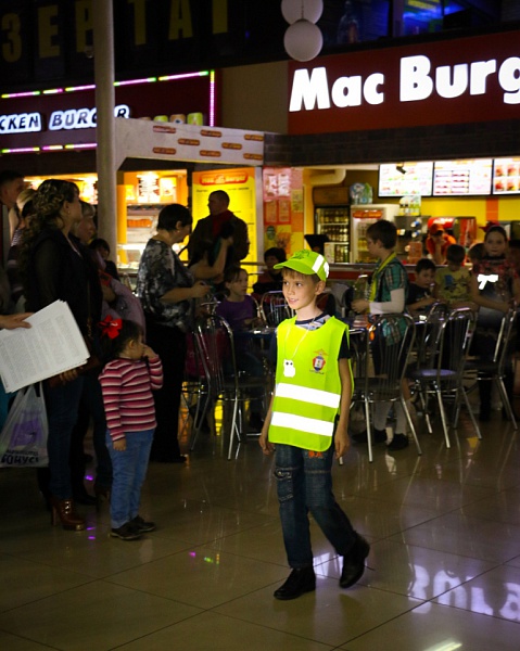 После этого в коридоре торгового центра был выключен свет и юные пешеходы устроили дефиле на импровизированном подиуме, демонстрируя при свете фонариков, как можно выглядеть на тёмной дороге не только безопасно, но и модно. Во время дефиле автоинспекторы рассказывали как правильно и наиболее эффективно размещать световозвращатели на одежде.