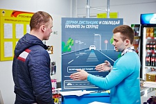Так, на территории автозаправочных станций водителей знакомили с основным правилом расчета безопасной дистанции – «правилом 3 секунд». Участникам мероприятия предлагалось закрепить полученные знания, приняв участие в эксперименте, а именно - отметить на специальной магнитной доске каждый из этапов торможения автомобиля от начала до полной остановки транспортного средства.