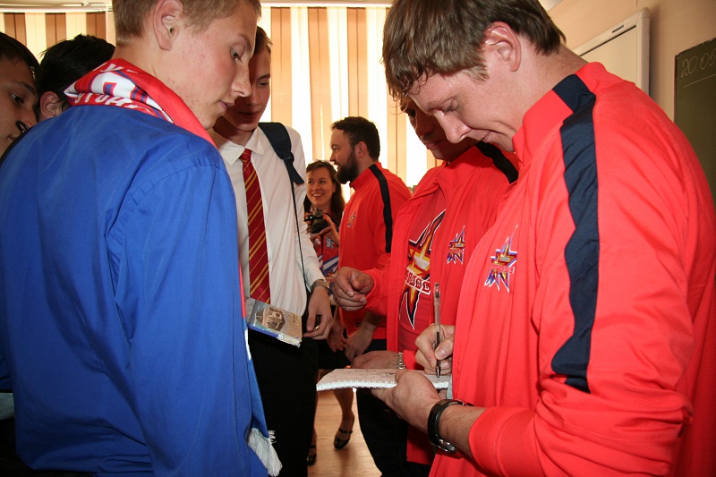 В завершение встречи ребята ребята смогли задать «звездным учителям по ПДД» интересующие их вопросы; авторы самых интересных получили памятные сувениры – шарфы с эмблемой клуба. Всего в уроках по ПДД приняли участие около 200 школьников.