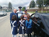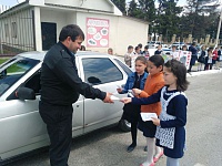 Ветеран и дети пообщались с водителями, рекомендовали им проявлять бдительность при приближении к пешеходным переходам, обращать внимание на особенность выбора и соблюдения безопасной дистанции в различных погодных условиях и вручили специальные памятки.