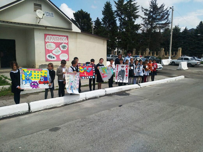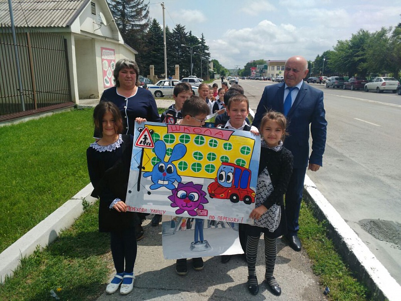 С плакатами и баннерами школьники прошли по пешеходным переходам поселка и напомнили водителям о приближении летних каникул.