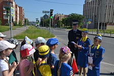 По пути им встречались регулируемые и нерегулируемые переходы, - дорожные инспекторы подробно объясняли, как правильно переходить через проезжую часть. У пешеходных переходов малышей встречали юные инспекторы движения, которые задавали ребятам загадки, читали тематические стихи и дарили выполненные своими руками памятки по правилам дорожной безопасности.