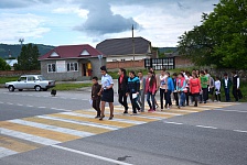 В завершение акции юные активисты продемонстрировали свои знания безопасного пересечения проезжей части, проследовав в «Шагающем автобусе», после чего посетили участника происшествия в больнице и пожелали ему скорейшего выздоровления.