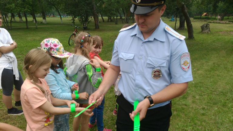 В завершение мероприятия всем ребятам стражи дорог вручили световозвращающие браслеты.