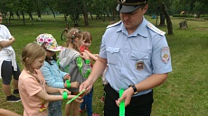Сотрудники ГИБДД в детском оздоровительном лагере провели очередную пропагандистскую акцию «Важные знания дорожной безопасности!».