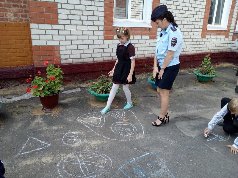 Во второй части мероприятия ребята показали себя с творческой стороны. Они заранее подготовились и принесли «ромашки», где на каждом лепестке были написаны правила дорожного движения, которые ни в коем случае не стоит игнорировать. После ребята приняли участие в конкурсе рисунков на асфальте, где они показали свои знания дорожных знаков.
