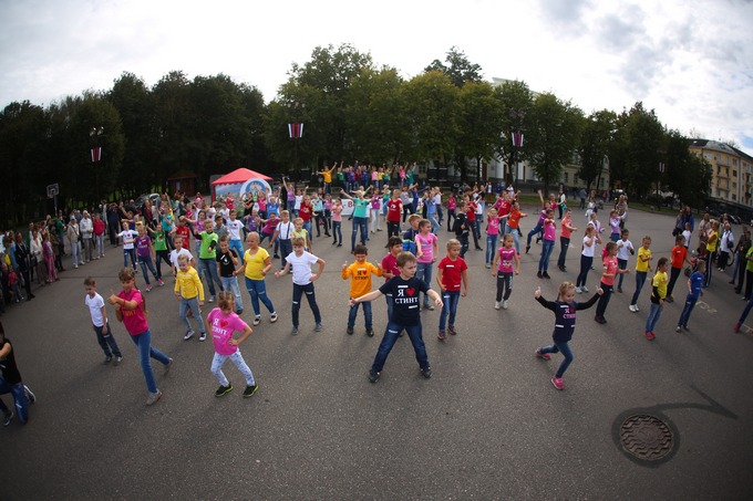После официального открытия праздника «Навстречу безопасности» на площади состоялся флеш-моб с участием 120 детей – представителей художественного ансамбля.