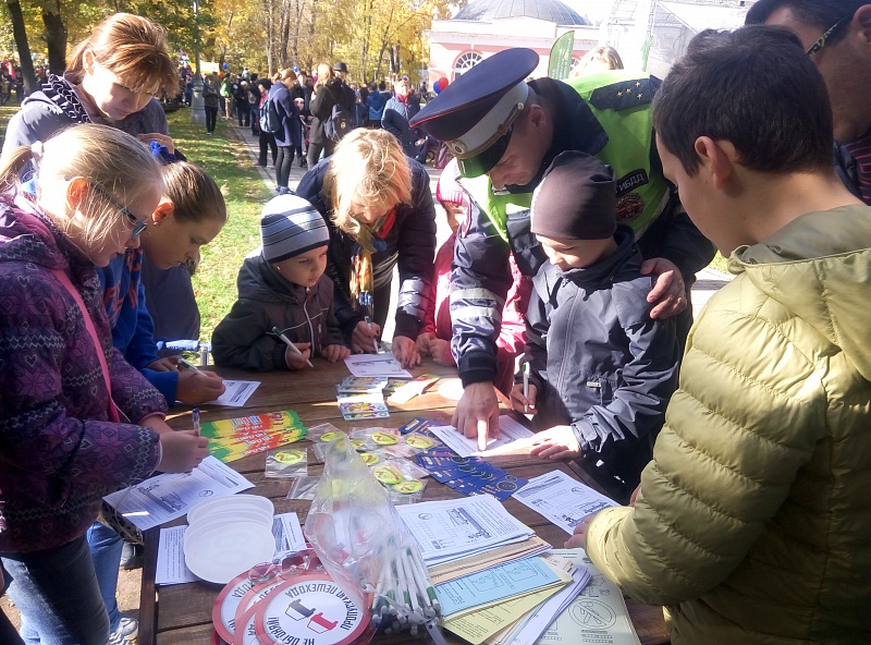 На фестивале были организованы различные спортивные состязания, мастер-классы, познавательные площадки, одна из которых для юных пешеходов и их родителей – это площадка «Безопасность».