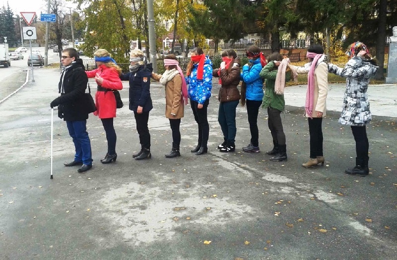 Так, серия акций состоялась в Кемеровской области. Учащиеся одной из школ на занятиях изготовили световозвращающие брелоки и подвески для граждан с нарушением зрения, а на встрече с представителями Всероссийского общества слепых всем присутствующим на трости была нанесена световозвращающая пленка и вручены аксессуары, позволяющие безопасно передвигаться в темное время суток. Помимо этого, инспекторы совместно с активистами волонтерского движения призвали автомобилистов внимательно относиться к людям с белой тростью и вручили им специальные памятки. Акция прошла на пешеходном переходе, где установлен дорожный знак «Слепые пешеходы».