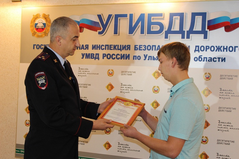 В региональной Госавтоинспекции состоялась торжественная церемония вручения благодарственного письма ульяновскому водителю Денису Калеганову, благодаря которому задержан злостный правонарушитель.