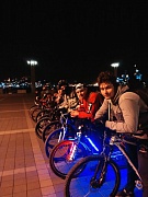 Массовый заезд прошел в вечернее время. Велосипедисты наглядно продемонстрировали действие светововзвращателей, обратив внимание на их необходимость в качестве элементов пассивной защиты.